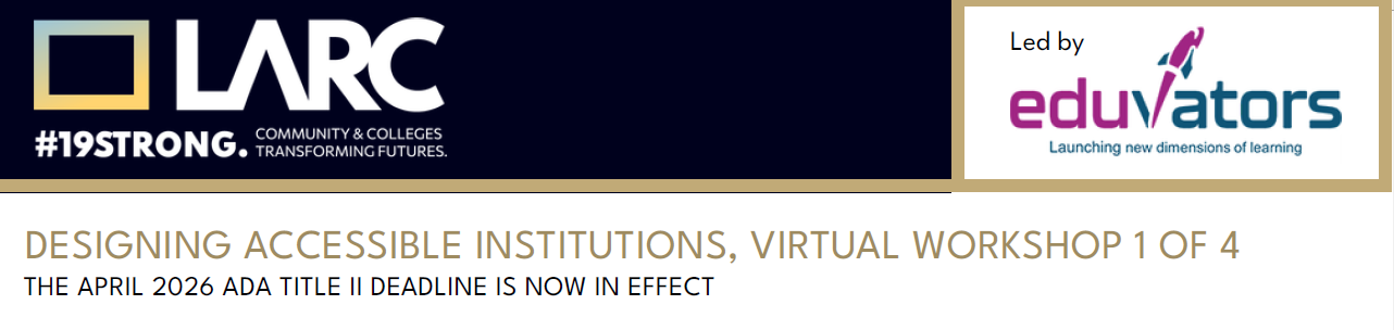 This is part of the Practical A.I. Tools for Inclusive Education series. Audience: All faculty, staff, administrators, and student services professionals. Accessibility is a shared responsibility across every campus role—and with the April 2026 ADA Title II deadline now in effect, institutions must move beyond a fragmented approach. This session introduces ADA Title II, Section … |