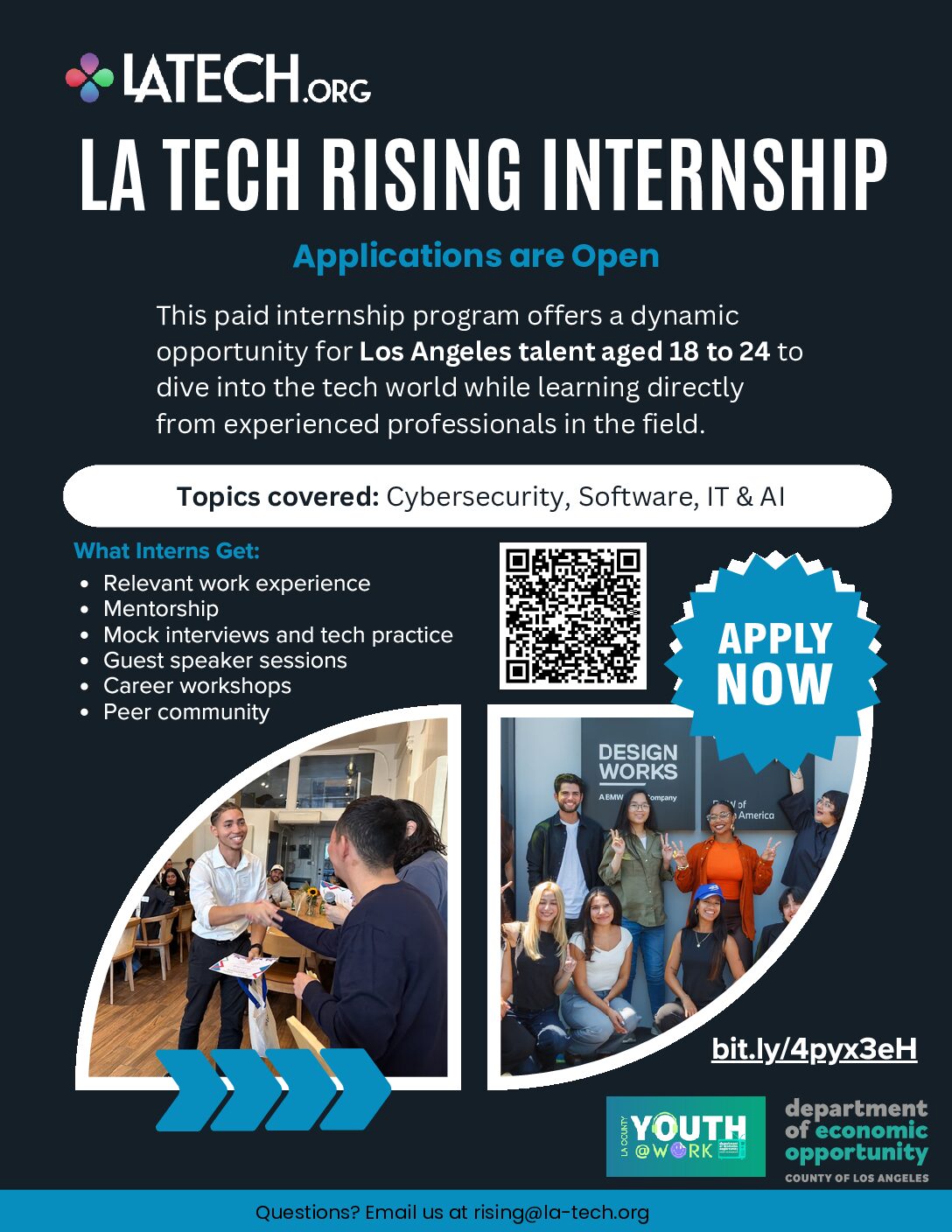 Apply here: Apply Now - Spring 2026 LA Tech Rising Internship (IT, Cybersecurity & Software)